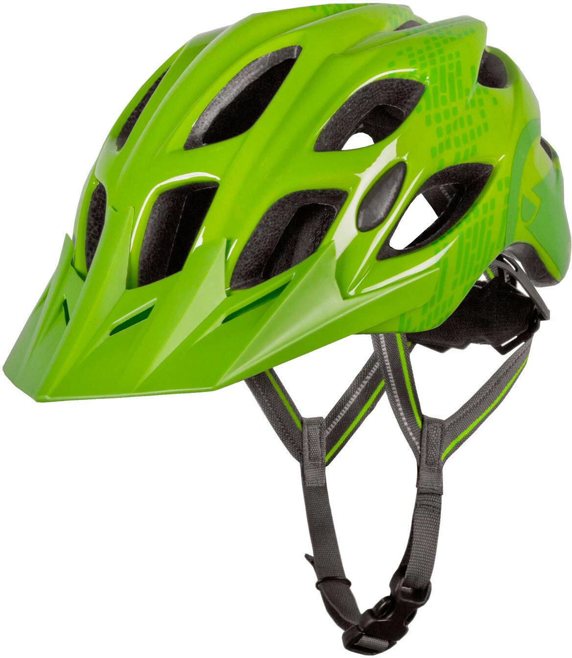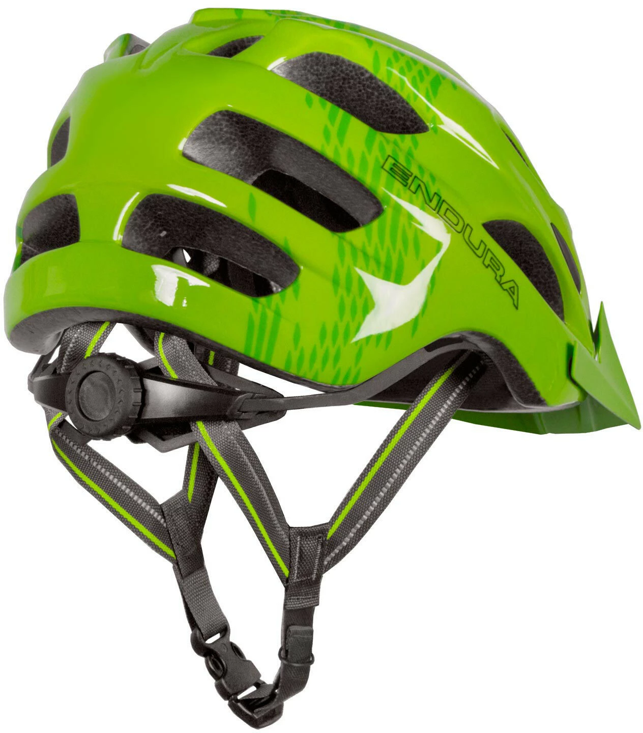 Stylish bicycle helmet from Endura with large openings for ventilation, integrated mosquito net and removable visor. The antibacterial padding, the compact chin strap with double strap division and the one-handed micro-adjustment system at the back of the head complete the Hummvee helmet.