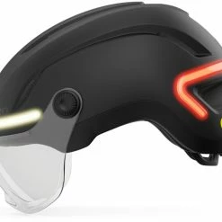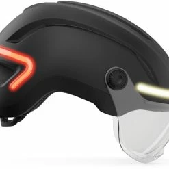 Når du vælger cykling, vælger du synlighed. Den nye Ethos Mips Shield revolutionerer cykling med et klart, stilfuldt visir, der beskytter dine øjne og gør det muligt for dig at bære dine eksisterende briller. Det kompakte og attraktive design med integreret Mips-beskyttelsessystem er ikke kun visuelt fængslende, men sikrer også større synlighed med integreret LED-belysning – hvid foran, rød bagpå og gul til blinklys – samt intuitiv fjernbetjening fra styret. Dette system er genopladeligt via USB-C med op til 10 timers drifttid i økonomitilstand og 5 timer i standardtilstand, og det leverer 45 lumen foran og 30 lumen bagpå i lysstyrke.