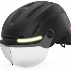 Når du vælger cykling, vælger du synlighed. Den nye Ethos Mips Shield revolutionerer cykling med et klart, stilfuldt visir, der beskytter dine øjne og gør det muligt for dig at bære dine eksisterende briller. Det kompakte og attraktive design med integreret Mips-beskyttelsessystem er ikke kun visuelt fængslende, men sikrer også større synlighed med integreret LED-belysning – hvid foran, rød bagpå og gul til blinklys – samt intuitiv fjernbetjening fra styret. Dette system er genopladeligt via USB-C med op til 10 timers drifttid i økonomitilstand og 5 timer i standardtilstand, og det leverer 45 lumen foran og 30 lumen bagpå i lysstyrke.