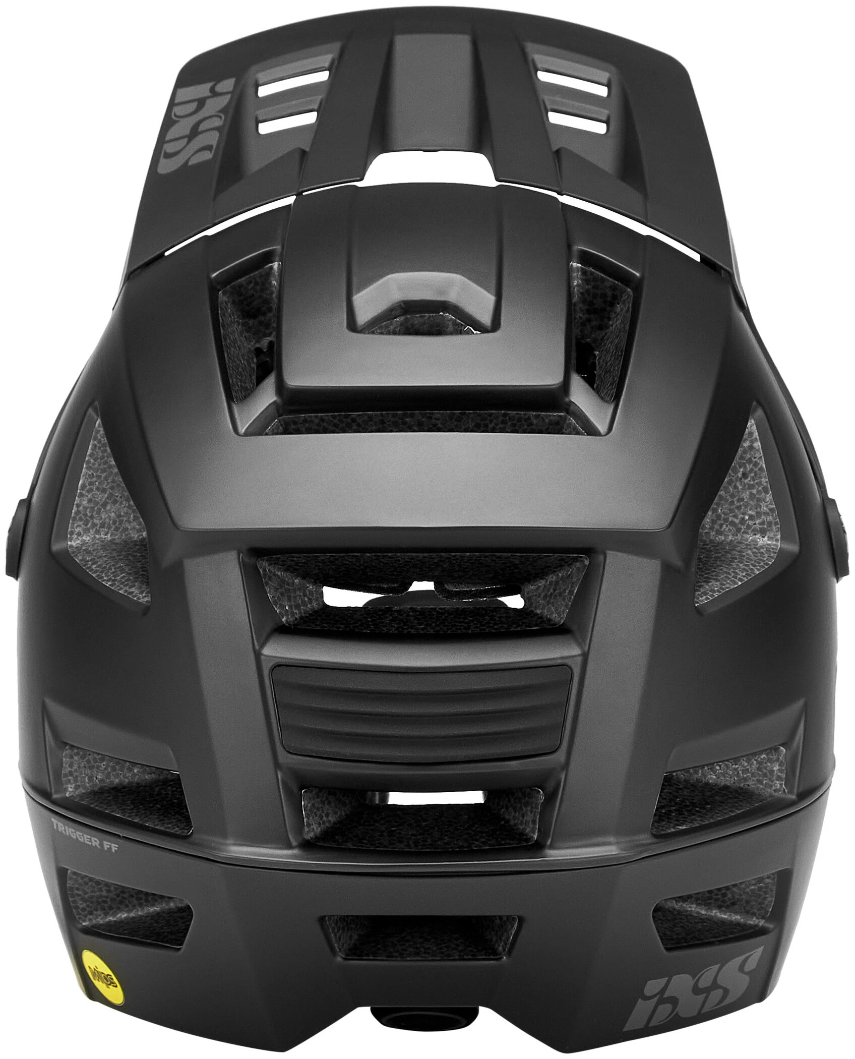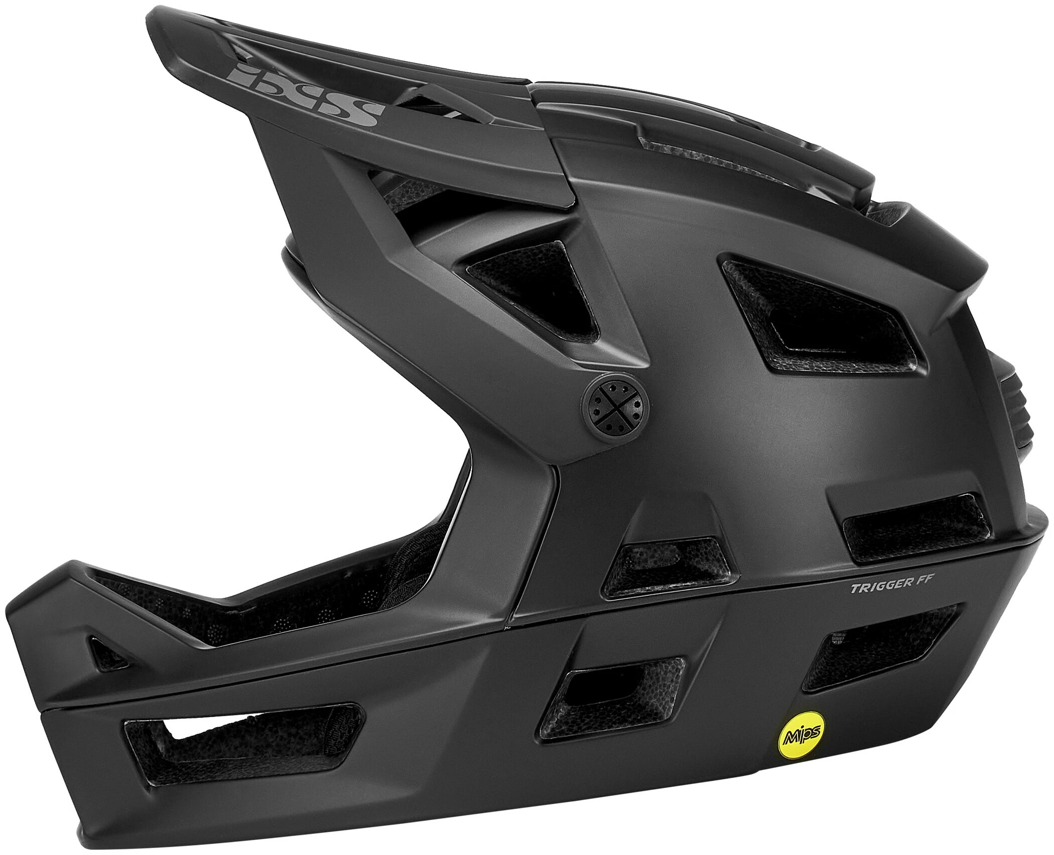 Med Trigger iXS har iXS en af de letteste all-mountain-, trail, enduro- og full-face-hjelme, der findes på markedet i øjeblikket. Trigger FF tilbyder beskyttelse hele vejen rundt takket være den patenterede Inmould-teknologi, hvor hjelmskallen er direkte forbundet med det absorberende EPS-materiale. Den unikke X-FRAME-konstruktion, som kombinerer EPS-hagepude og hovedbeskyttelse i en enkelt enhed, øger styrken af strukturen, samtidig med at vægten reduceres og ventilationen forbedres. Det store antal ventilationsåbninger og deres placering samt yderligere integrerede kanaler sikrer en høj luftcirkulation, hvilket resulterer i en mærkbart effektiv køling. Den to-komponent justeringsenhed med præcisionstænder kaldet ErgoFit Ultra giver en komfortabel og meget præcis justering af hjelmen i lodret og vandret retning. Det sikrer således en optimal pasform og samtidig en høj bærekomfort. Det to-trins justerbare visir gør det nemt at placere gogglen. Den magnetiske lukning, som er let at bruge med én hånd, er en anden detalje ved Trigger FF-hjelmen, som er populær i praksis. Hjelmserien overholder naturligvis den europæiske sikkerhedsstandard EN1078 samt den amerikanske CPSC- og endda ASTM-standard for downhillbrug for øget sikkerhed ved frontalkollision.