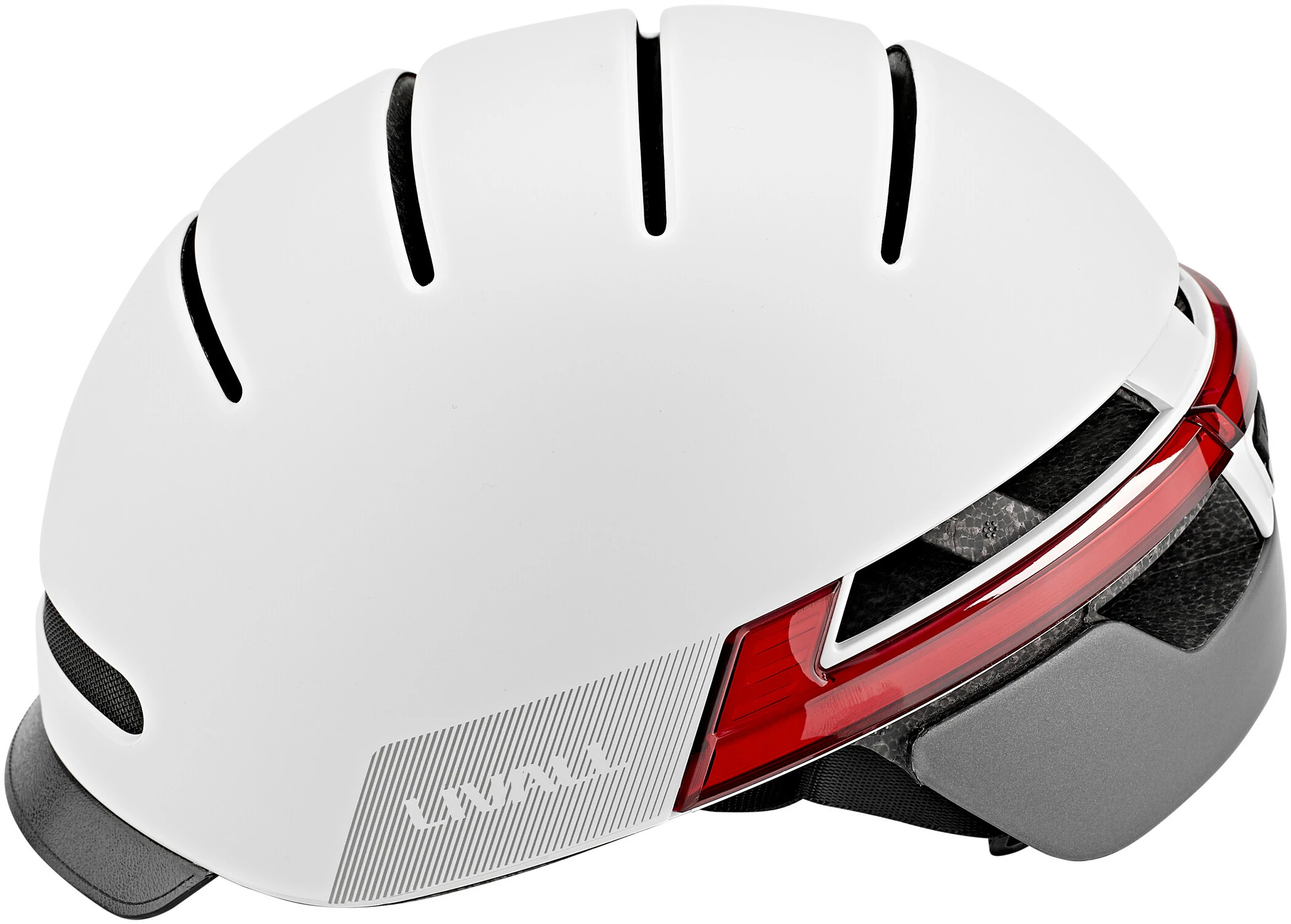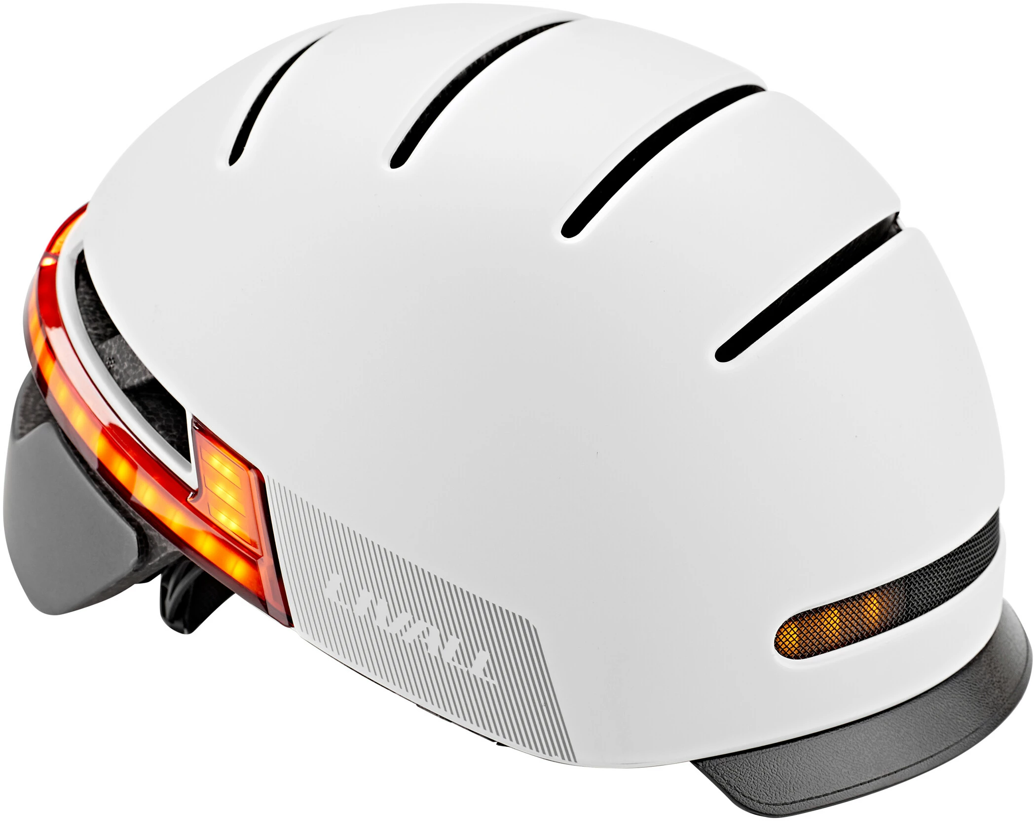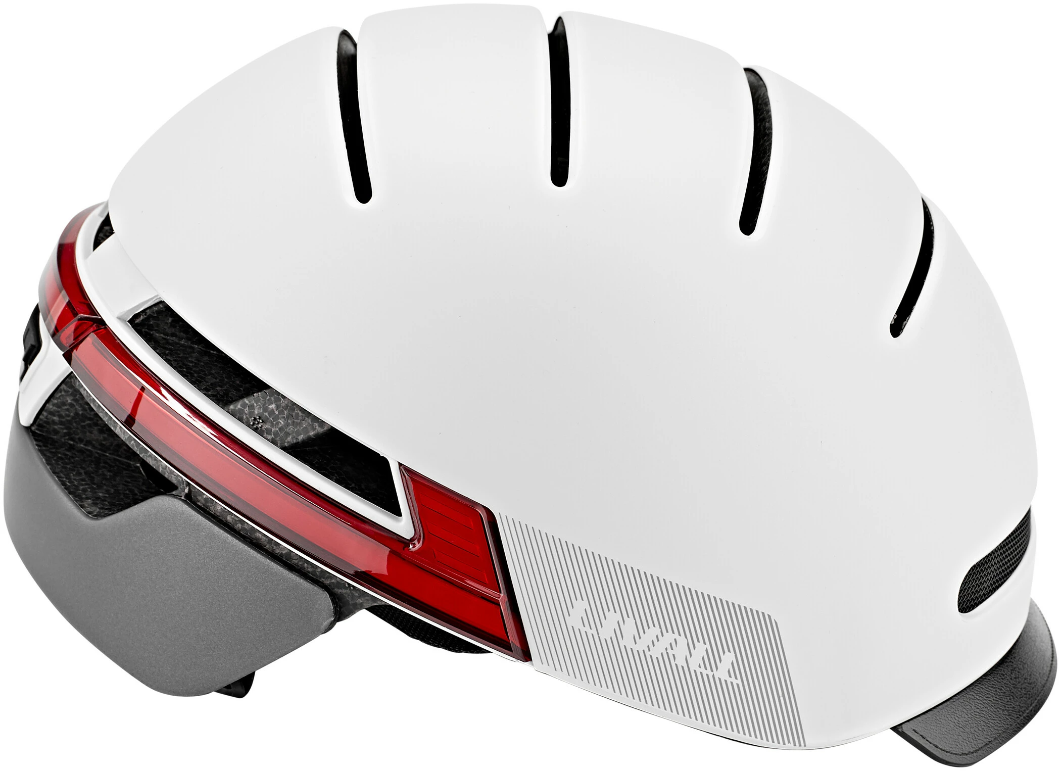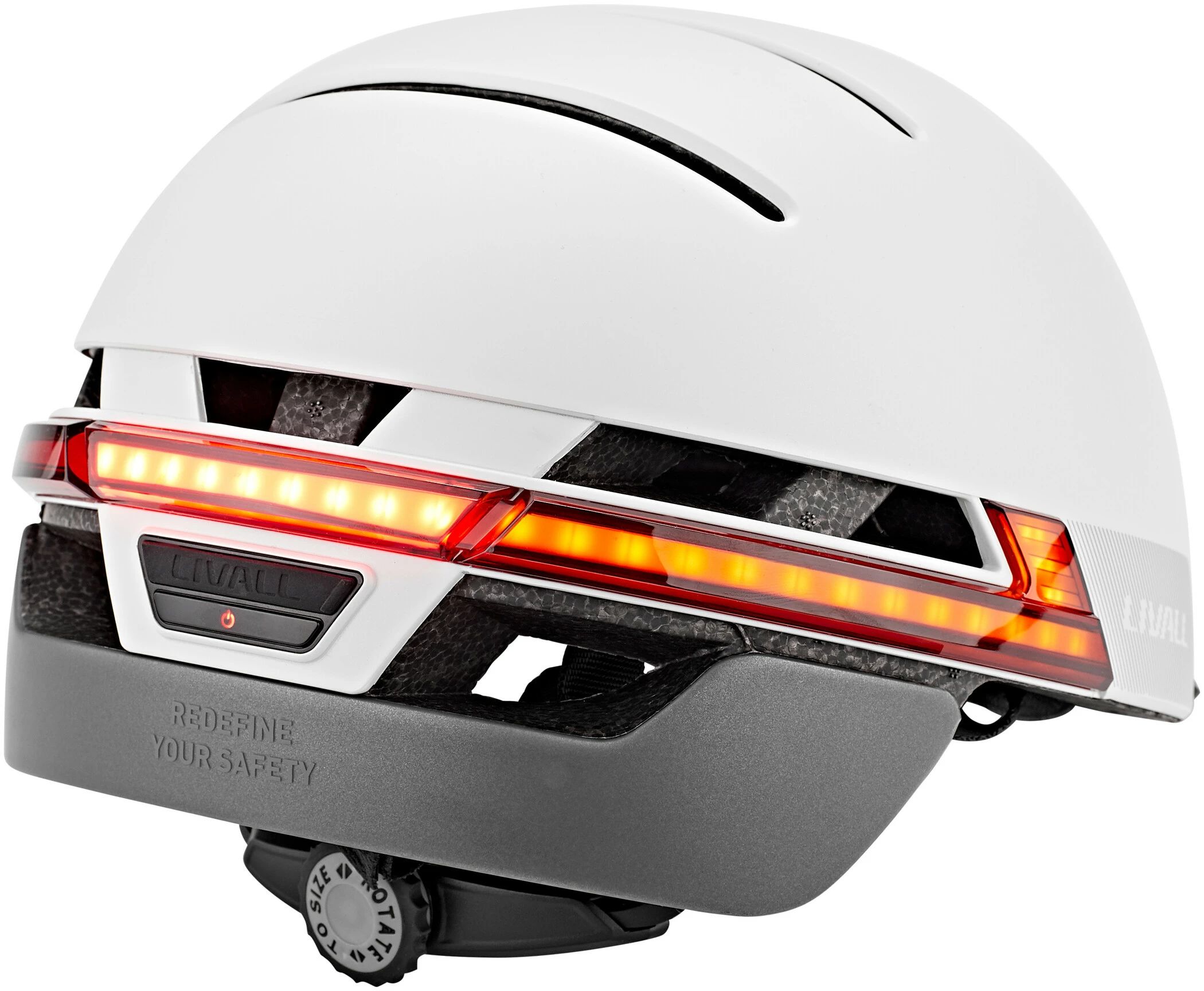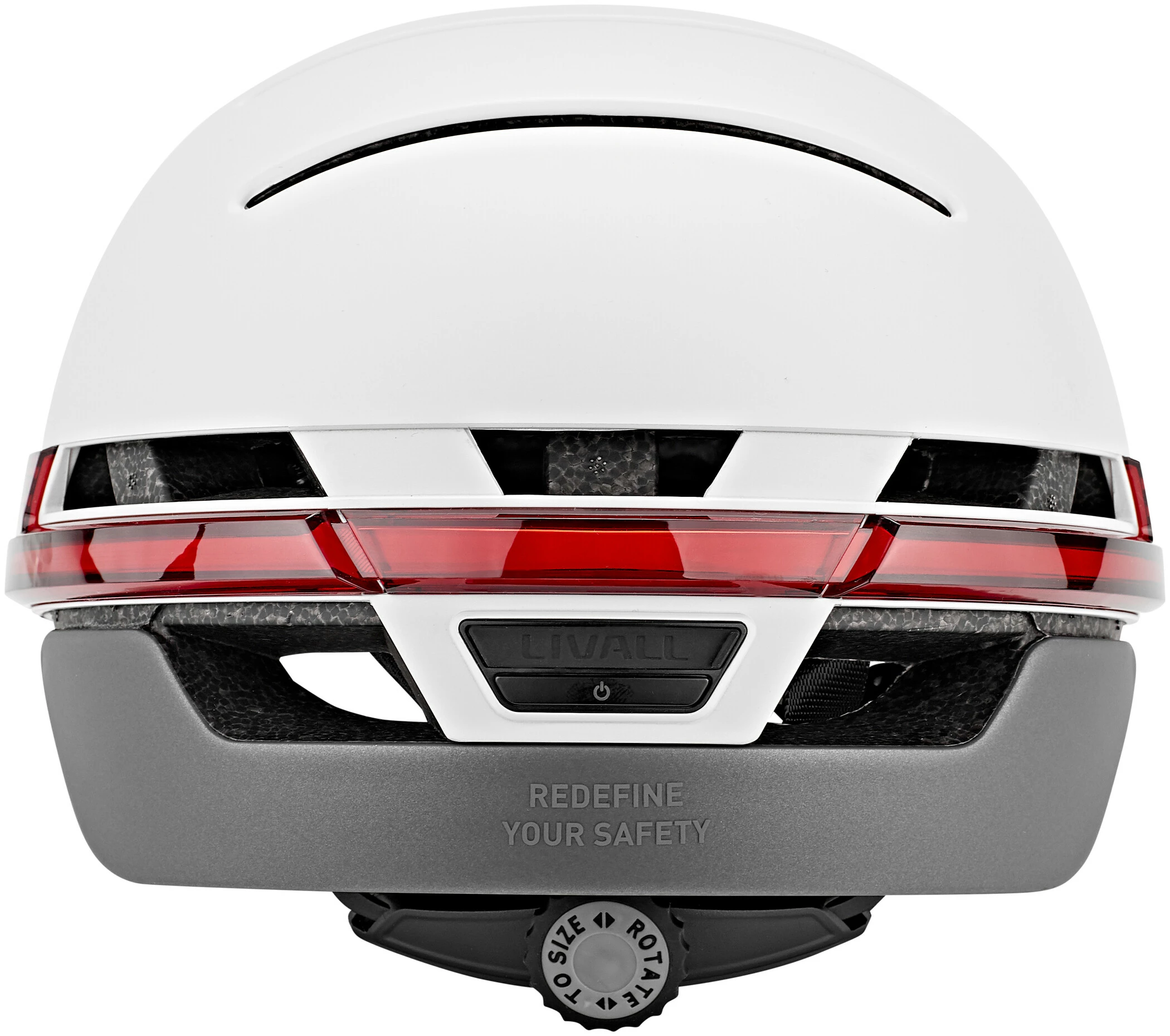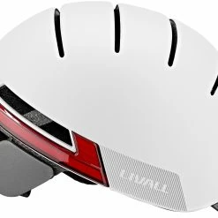 Det sofistikerede LED-system tilbyder en absolut nyskabelse inden for cykelhjelme, en “dag- og nartautomatik”. Den 270°-omfattende belysning tænder automatisk, så snart det bliver mørkt. Et ægte håb, når det gælder sikkerhed på de mørke veje. Når det er lyst nok, slukker de smarte lysdioder af sig selv igen. Den integrerede indikator betjenes direkte fra styret via en fjernbetjening.