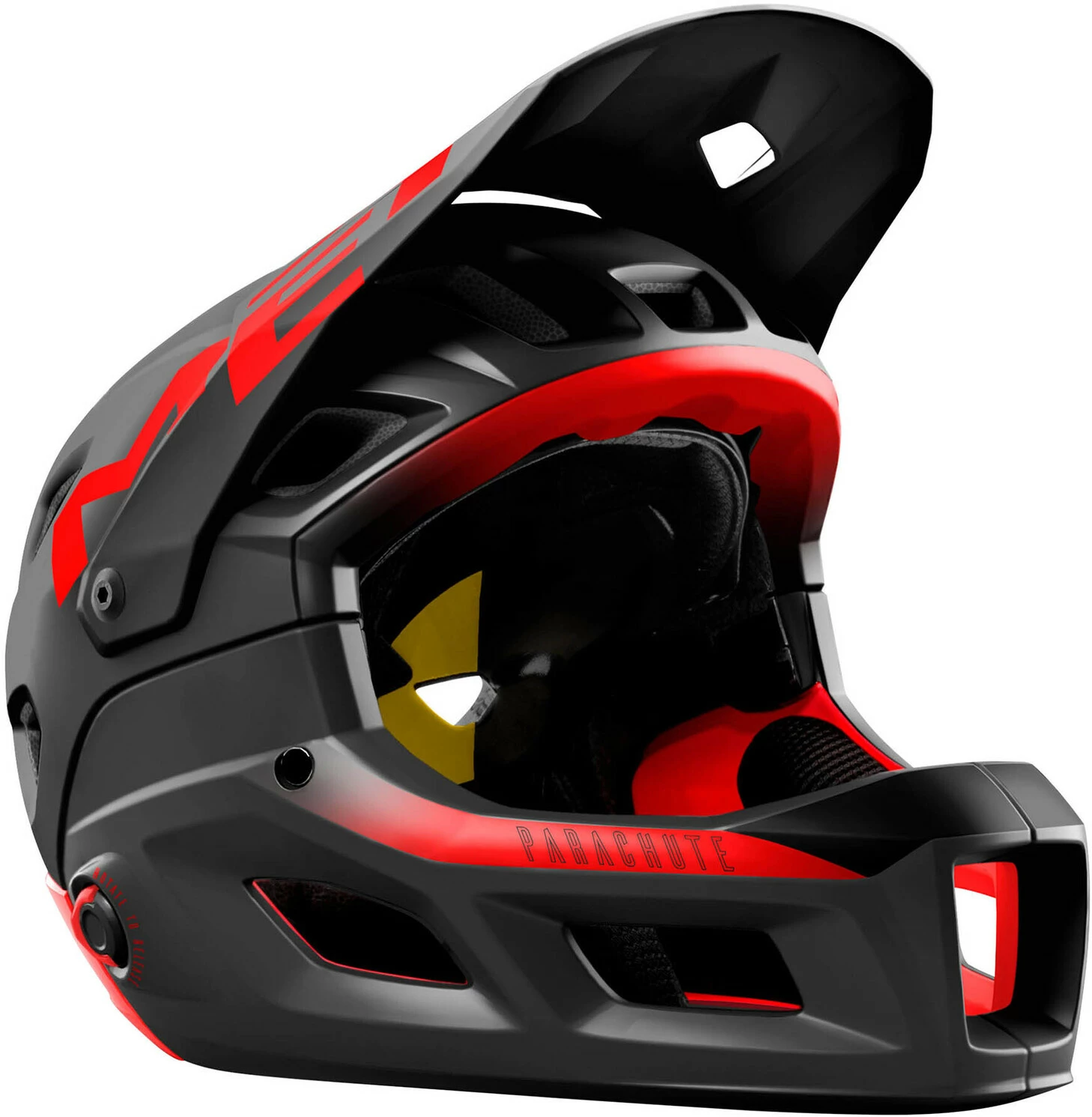 To hjelme i én. Parachute MCR overbeviser med sit stilfulde og aggressive look i full-face-format og tilbyder samtidig maksimal beskyttelse hele vejen rundt,